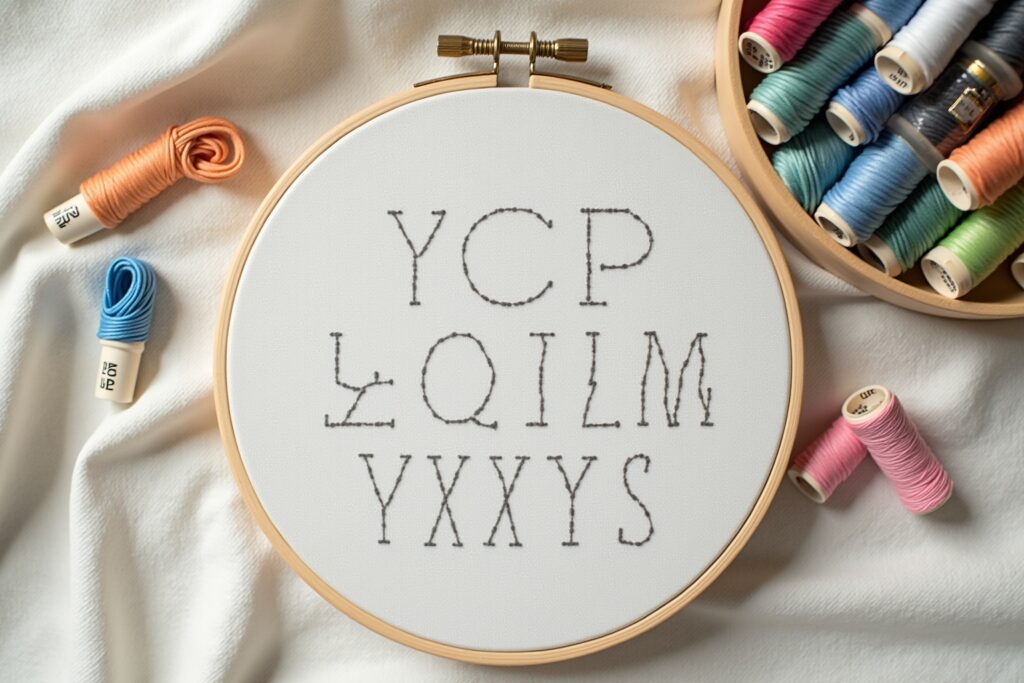 - Auswahl der Stickstiche: Für Buchstaben eignen sich verschiedene Stiche wie der Rückstich, der Stielstich, der Kreuzstich (wenn die Vorlage ein Raster ist) oder der Plattstich (für gefüllte Buchstaben).