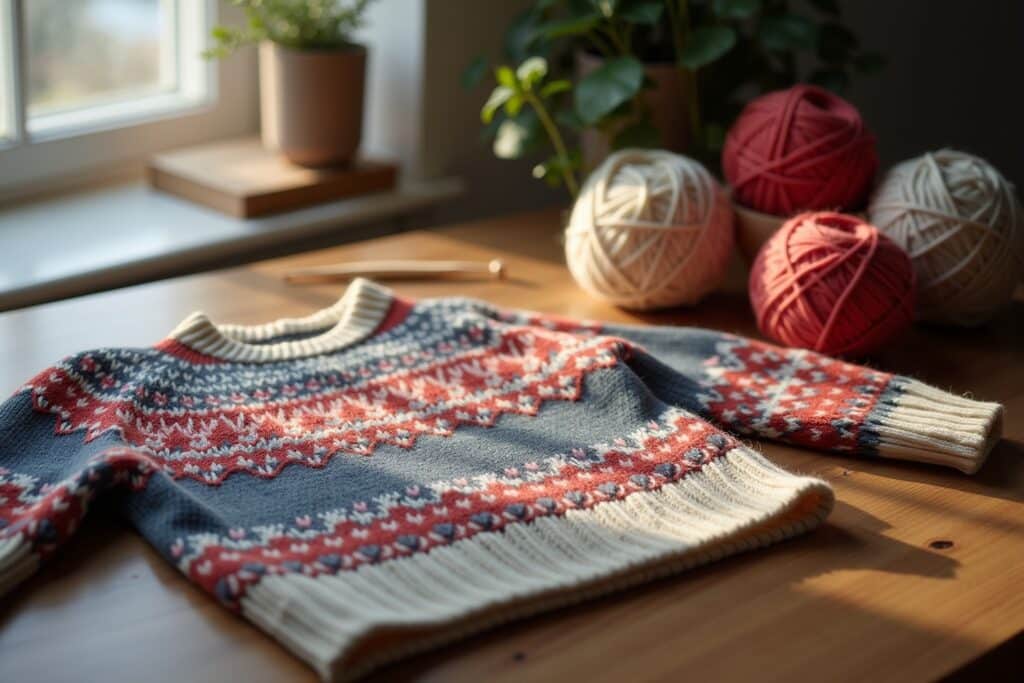 - Farbspiele: Pullover mit aufwendigen Farbverläufen (Ombré), Jacquard-Mustern (Fair Isle, Nordic Design), Intarsien (bildhafte Motive) oder Colorwork-Techniken.